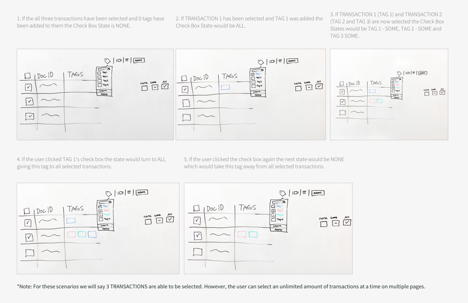 Enable customers to more efficiently manage, organize and search upon multiple transactions. Our goal specifically, is for users to create, edit and delete tags across multiple transactions. Tags will allow user to find their transactions faster and more effectively.